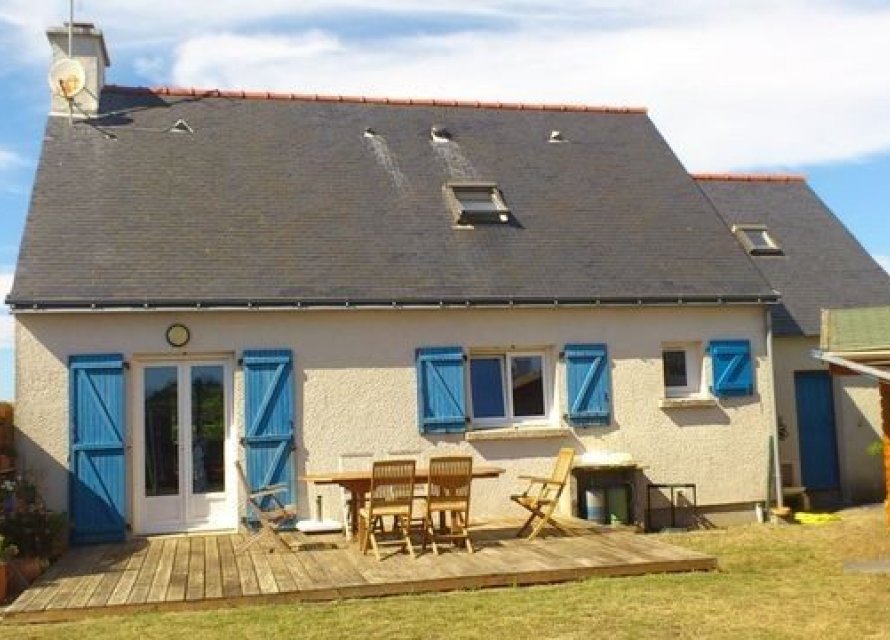 Saint Pierre Quiberon, à vendre maison à deux pas de la côte sauvage dans un environnement calme. Elle offre au rdc: entrée, salon/séjour avec cheminée, cuisine aménagée équipée, chambre, salle d'eau + wc et un garage avec combles aménageables. A l'étage : 3 chambres et une salle de bains avec wc. Belle terrasse en bois plein sud avec cabanon dans jardin clos. Puits.198Kwh/m²/an
