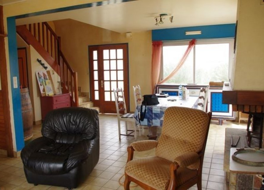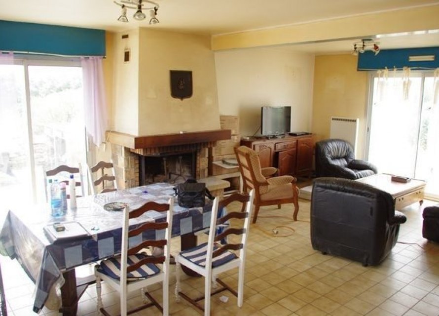 Dans un village à deux pas des chemins côtiers, maison composée d'un salon/séjour avec cheminée (38 m² environ), cuisine ouverte aménagée, cellier, chambre avec salle d'eau privative, WC, garage. A l'étage : palier, 4 chambres et une pièce à finir d'aménager, salle de bains + WC. Beau potentiel ! A visiter sans tarder ! ,157Kwh/m²/an