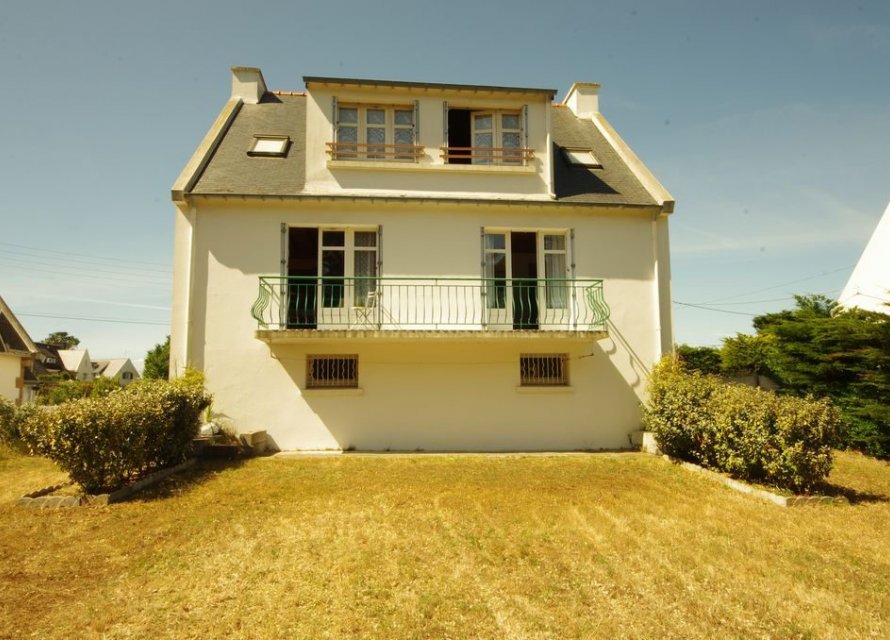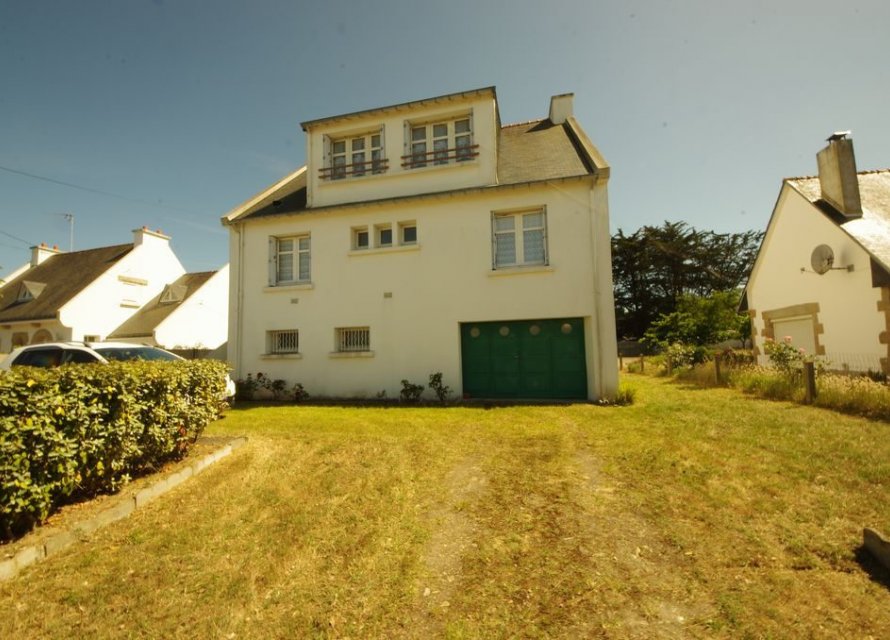 Portivy. Sur un terrain de 811 m2, maison bien entretenue exposée plein SUD de 124 m² composée comme suit : rdc : garage, chaufferie, atelier, salle d'eau + wc. A l'étage : entrée, salon/séjour aspectant sur balcon plein sud, deux chambres, salle d'eau, w