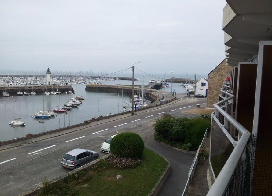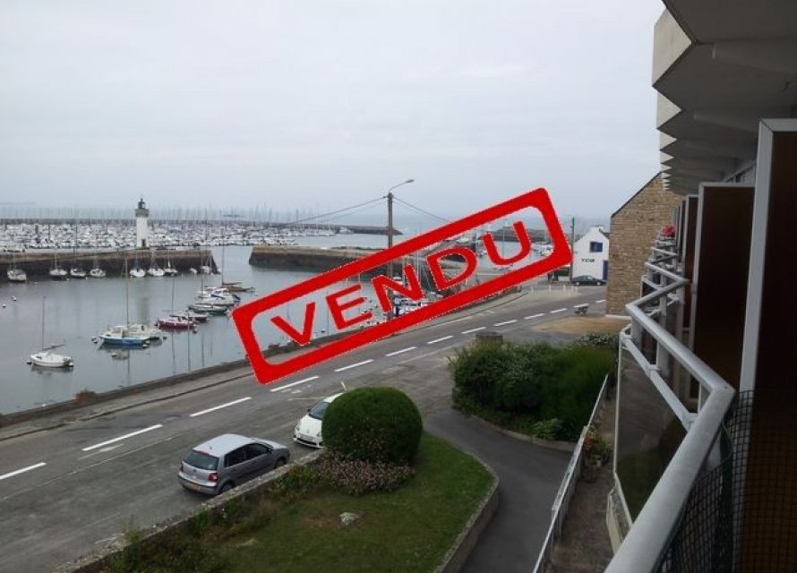 Port Haliguen. Beau panorama offrant calme et vue mer pour cet appartement de type 2 composé d'une entrée avec placards, salon/séjour avec terrasse vue mer, cuisine US, chambre avec placards et terrasse, salle de bains et wc indépendant. 1 place de parking. Laissez vous tenter... ,220Kwh/m²/an