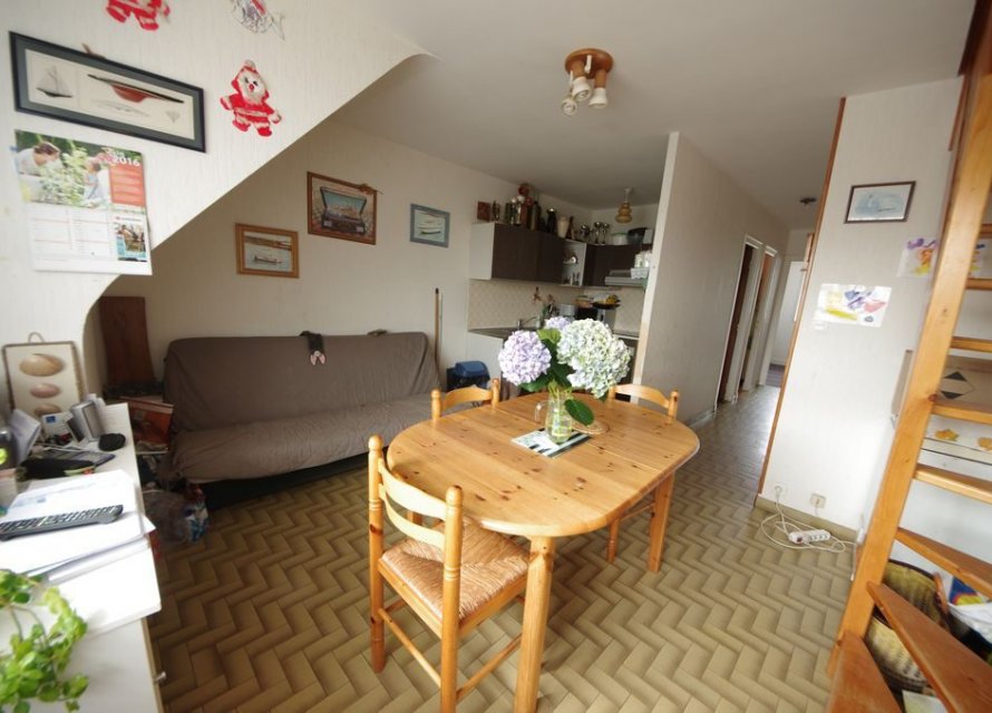 Plein centre ! Appartement en duplex de type T4 situé au 2ème étage d'une petite résidence. Il offre au premier niveau : Entrée, salon/séjour, cuisine ouverte, salle de bains, wc., chambre. À l'étage : 2 chambres. Exposé EST/OUEST. Aperçu mer. Place de parking privatif. Local en commun.277Kwh/m²/an