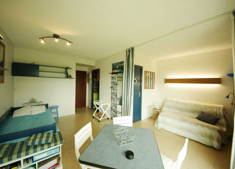 Dans une résidence à 200 mètres des plages, un studio situé au rdc d'une petite copropriété. Il se compose d'une cuisine équipé indépendante et d'une pièce donnant sur une terrasse avec aperçu mer. Cave. Un local à vélo. Une place de parking.222Kwh/m²/an