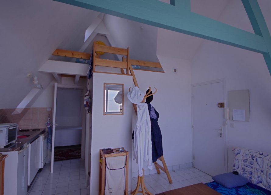 A deux pas des commerces et au pied de la grande plage, cet appartement situé au 2éme étage d'une petite résidence sécurisée, vous offre une magnifique vue sur Belle Ile et port Maria. il est composé d'une entrée sur le séjour, d'un coin cuisine, d'une salle d'eau avec WC, d'une chambre et d'un coin chambre en mezzanine.NC