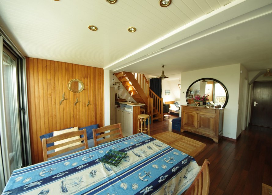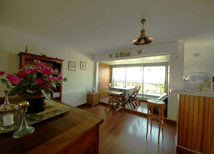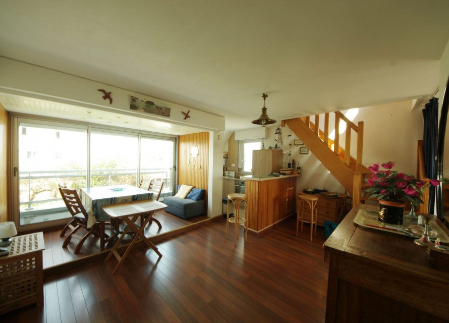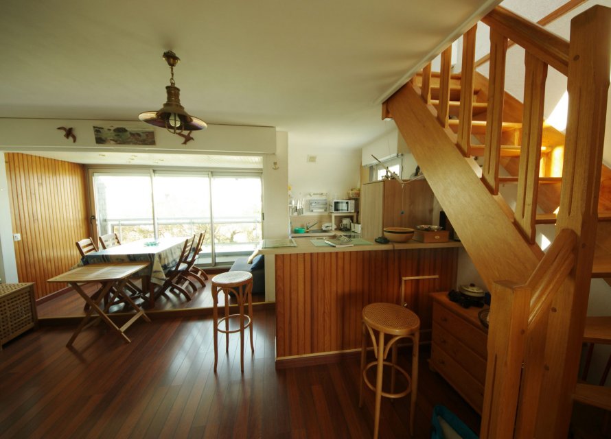 Dans un secteur proche des plages et de la Thalasso, un duplex au 1er étage d'une résidence de 6 logements, vous offrant: une entrée avec placards, d'une pièce de vie avec cuisine aménagée/équipée et d'un coin chambre, salle d'eau/WC; A l'étage: une spacieuse chambre en mezzanine et WC. Cave et Terrain de stationnement de 60 m2 attenant à la résidence.330Kwh/m²/an
