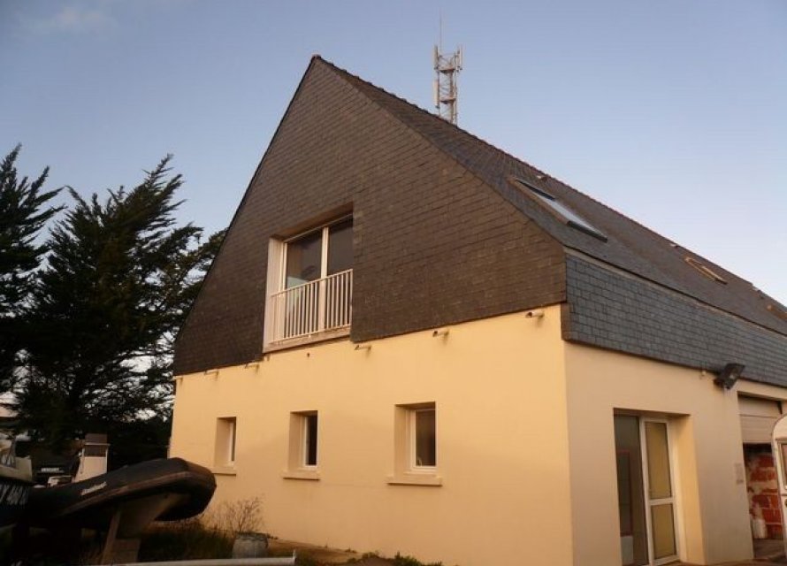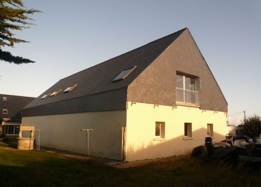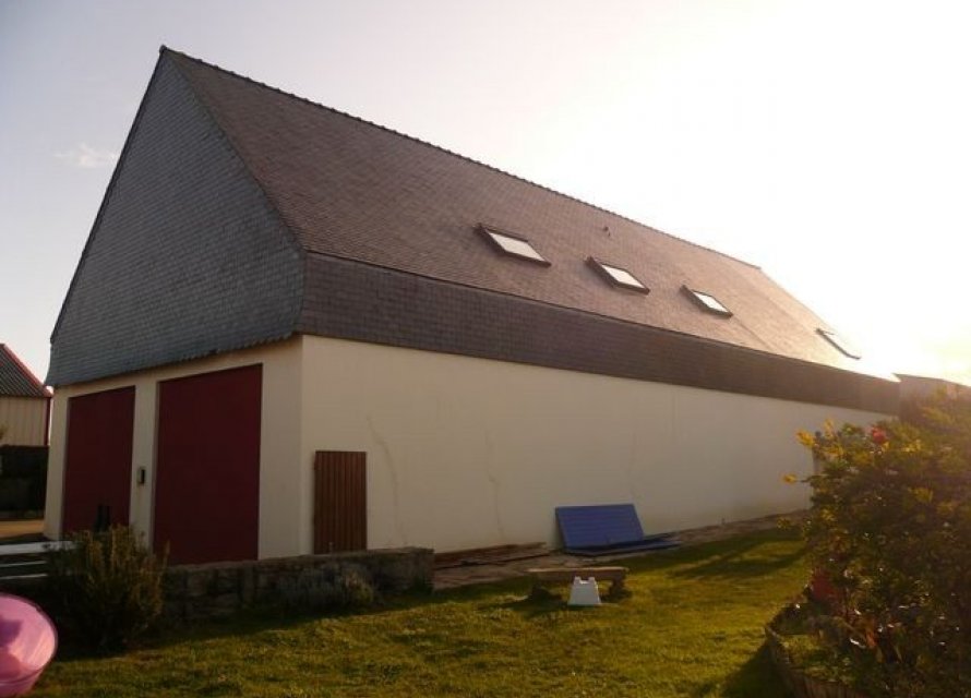 Du potentiel pour cet ensemble immobilier de 250 m² environ composé au rdc de 2 grands garages et d'un local. A l'étage vaste appartement offrant un salon/séjour, une cuisine, 3 chambres, une salle de bains + douche, une pièce à finir d'aménager et un wc. Loggia orientée plein sud. Jardin.NC