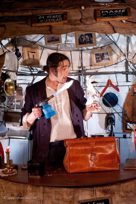 A 18h. Magie. Théâtre de Verdure. Dès 6 ans. 45 min. GratuitA 18h. Objet public non identifié ou cabinet de curiosités fantasque. Ça grince, ça cliquette, ça grogne? l?irréel s?invite chez vous ! Illusionniste du quotidien et mécano des zygomatiques, Edgar vous invite dans son entre-sort. Il secoue votre sens profond de la logique avec ses trouvailles incongrues et ses tours farfelus. Entre paris impossibles, arnaques, faux ratés et vraies performances, La Tente d?Edgar vous mène vers ce petit coin de la tête où tout reste possible. Dès 6 ans. Durée: 45 min à 1h. Gratuit.