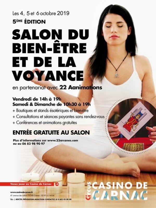 Vendredi 14h à 19h. Samedi et dimanche 10h30 à 19h. Entrée libre. Casino CircusLe vendredi de 14h à 19h. Le samedi et le dimanche de 10h30 à 19h. Boutique et stands ésotériques et bien-être, consultations et séances payantes sans rendez-vous, conférences et animations gratuites. Entrée gratuite au salon.