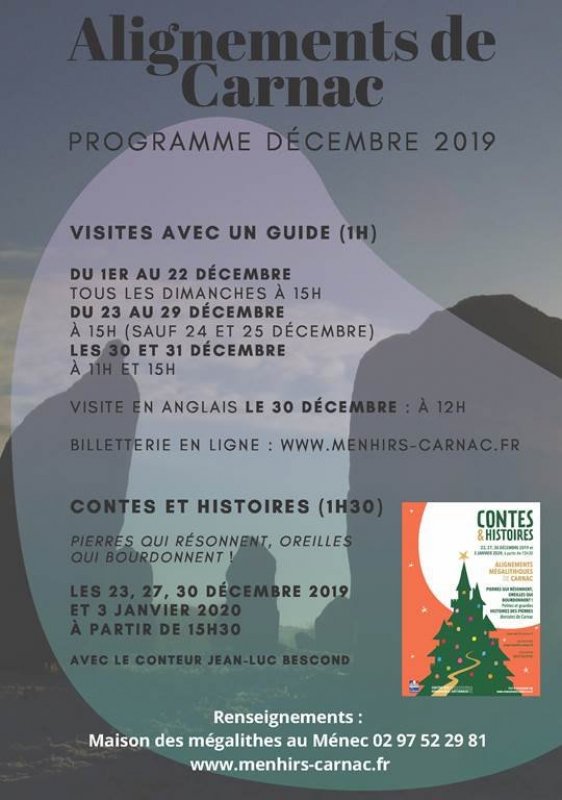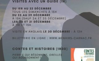 9?/Réduit 7?/Gratuit - de 7 ans. Billet dès que possible Maison des MégalithesLe Centre des monuments nationaux propose aux visiteurs de découvrir ou redécouvrir les alignements de Carnac au coeur des alignements avec un guide conférencier. Tarif: 9?. Réduit: 7?. Gratuit pour les - de 7 ans. Retrait des billets dès que possible à la Maison des Mégalithes ou en ligne sur ticket.monuments-nationaux.fr. Pas de réservation par téléphone.